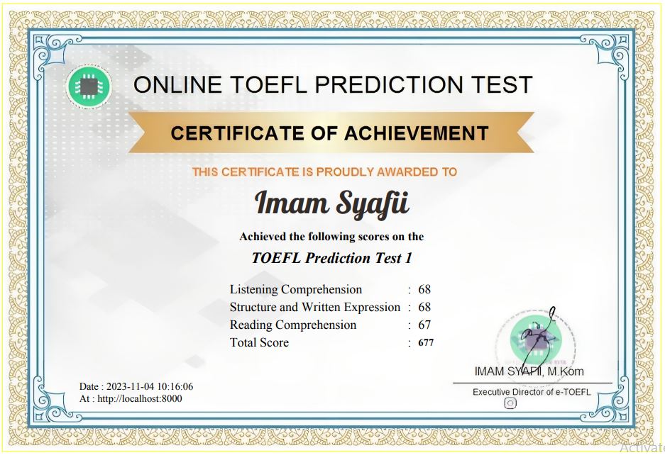 e-TOEFL adalah platform Pendaftaran dan Ujian untuk TOEFL dari Pusat Pengembangan Bahasa UIN Raden Fatah Pelambang. Sudah punya akun ? Login Sekarang untuk mulai ujian dan dapatkan sertifikat.